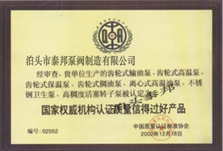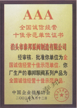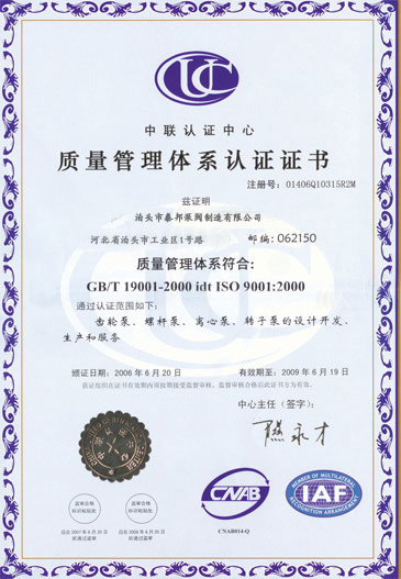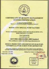 ISO9001質(zhì)量管理體系證書英 質(zhì)量承諾信譽單位證書 特種泵設(shè)備制造許可證書