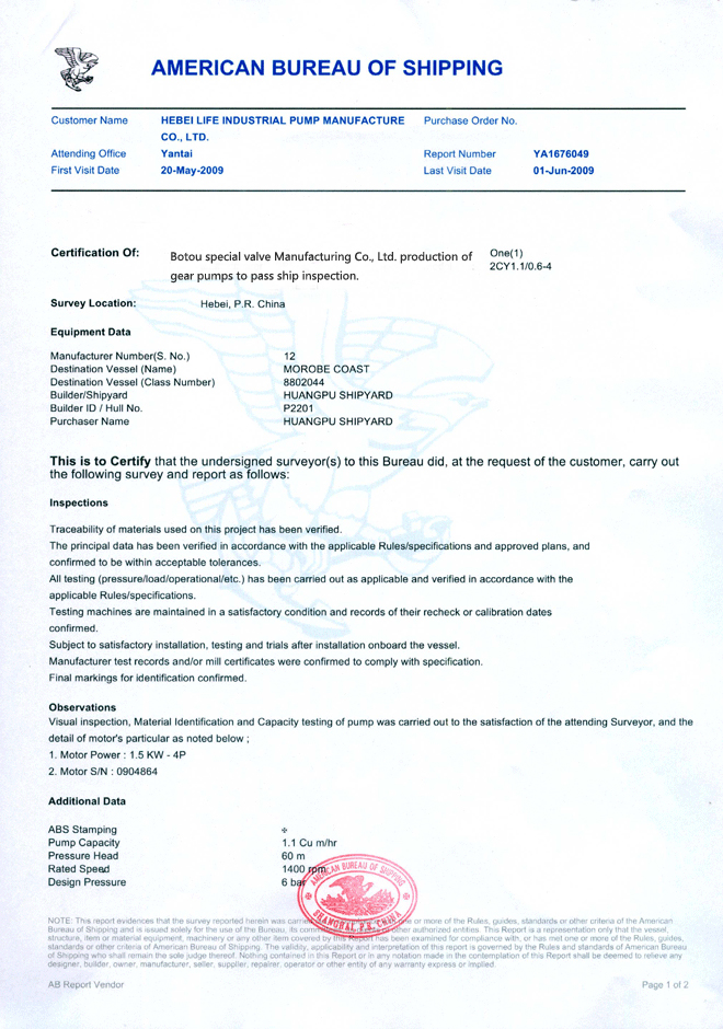 國際質(zhì)量體系認證證書 ABS認證證書 法國船級社質(zhì)量體系認證證書
