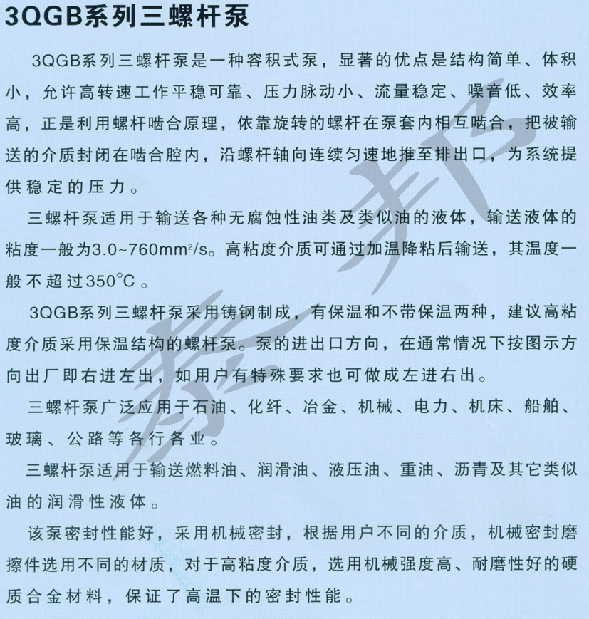3gqgb螺桿瀝青泵,螺桿瀝青泵,浙江青瀝青泵是采用鑄鋼制成,有保溫和不帶保溫兩種,建議高粘度介質(zhì)采用保溫結(jié)構(gòu)的螺桿泵?头娫:0317-8198985