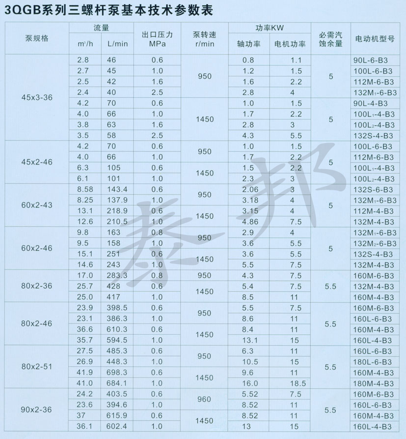 3GQGB螺桿瀝青泵詳細參數(shù)